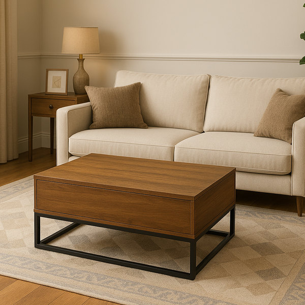 Não se trata apenas de uma mesa de centro. É uma peça de design inteligente, pensada para o seu dia a dia. Com um baú interno espaçoso, ela é perfeita para guardar mantas, livros, controles remotos e tudo mais que você precisa ter à mão, mas fora de vista, mantendo seu espaço impecável.