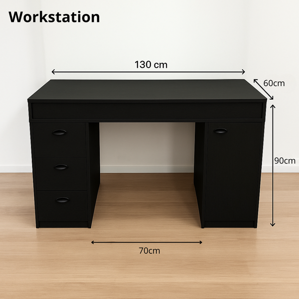 Esta Workstation não é apenas uma escrivaninha, é uma estação de trabalho completa com design inteligente e espaço generoso. Sua estrutura pensada oferece uma ampla superfície de trabalho principal a uma altura ergonômica de 75cm, ideal para horas de uso confortável. Com 1,30m de largura e 60cm de profundidade, você tem todo o espaço que precisa para seu computador, materiais e o que mais for essencial para o seu dia a dia.